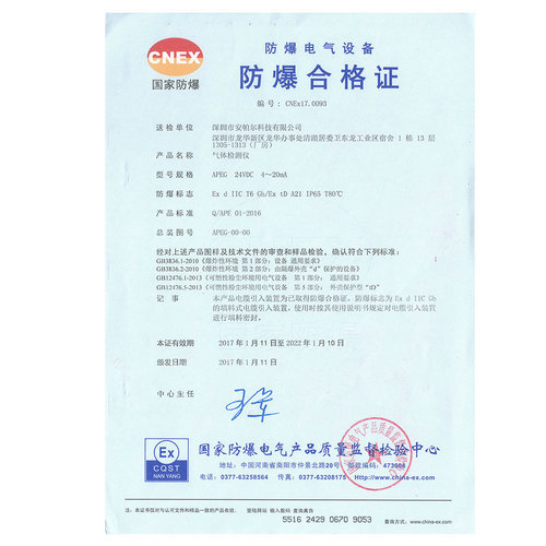 APEG-J (0~100)%LEL CPA計量器具形式批準證書